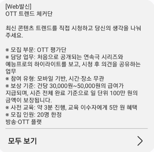 “OTT 평가단” 문자, 정말 돈 벌 수 있을까? 사기 여부 총정리