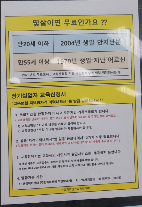 며칠 전 저는 충북 청주 봉명사거리 우리은행 4층에 위치한 건설기초안전교육센터에서