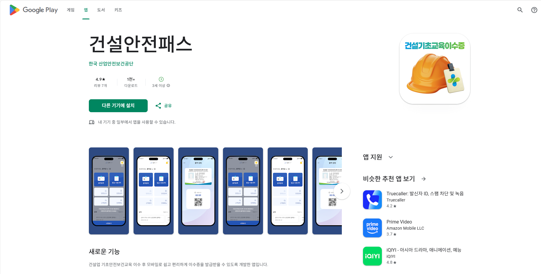 현장 출입 시 이 이수증이 필수입니다.