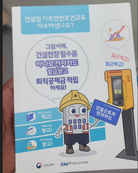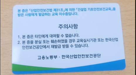 다음 주부터 아파트 공사 현장에서 근무할 예정이라 필수 조건인 기초안전보건교육 이수증을