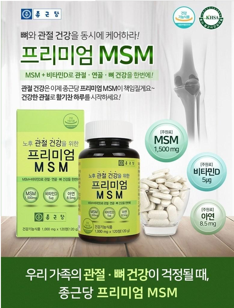 - 특징: 국내 제조, 하루 2,000mg MSM 섭취 가능