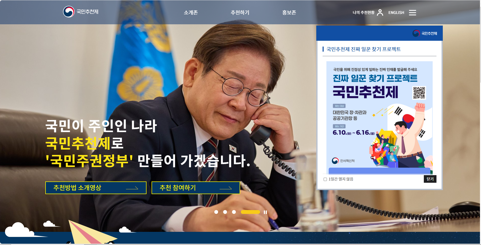 하지만 이제는 국민이 직접 유능한 사람을 정부에 추천하는 시대가 열렸습니다.