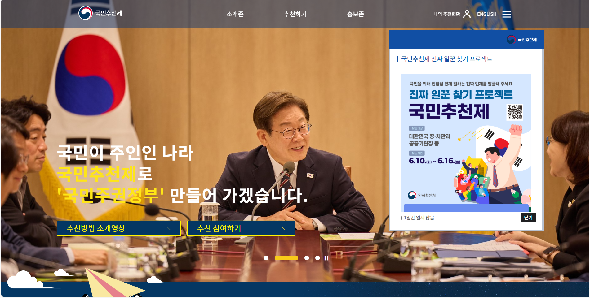 대한민국 국민 누구나 참여할 수 있는 국민추천제.