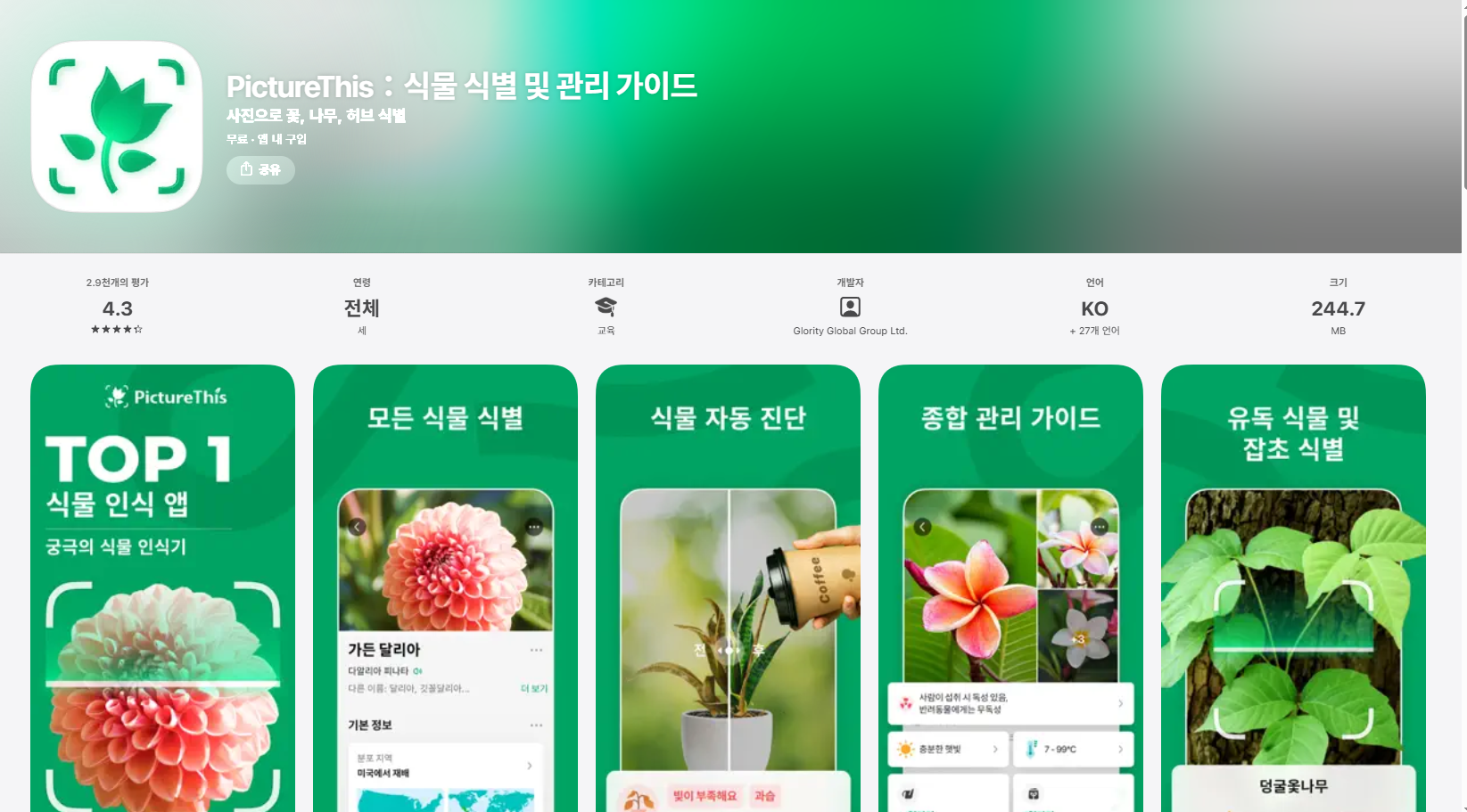App Store에서 Glority Global Group Ltd.의 PictureThis:식물 식별 및 관리 가이드 앱을 다운로드하십시오. 스크린샷, 평가 및 리뷰, 사용자 팁, PictureThis:식물 식별 및 관리 가이드 앱과 비슷한 다른 게임