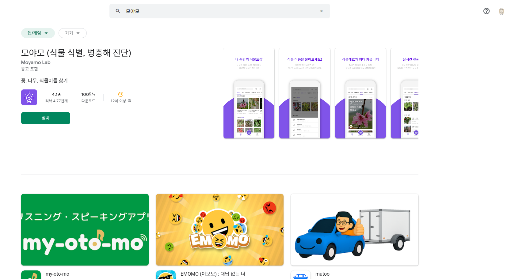국내 사용자에게는 모야모 앱도 정말 인기가 많습니다.