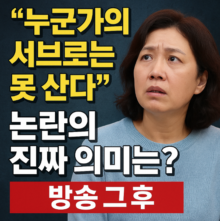 “누군가의 서브로는 못 산다”는 말은 단순한 해프닝으로 끝날 수 있는 일이 아니었습니다. 이 말은 결국 우리 사회의 역할 구분, 가정 내에서의 위치, 남성과 여성의 권력 구조, 그리고 개인의 주체성이라는 민감하지만 중요한 주제를 끌어올렸기 때문입니다.