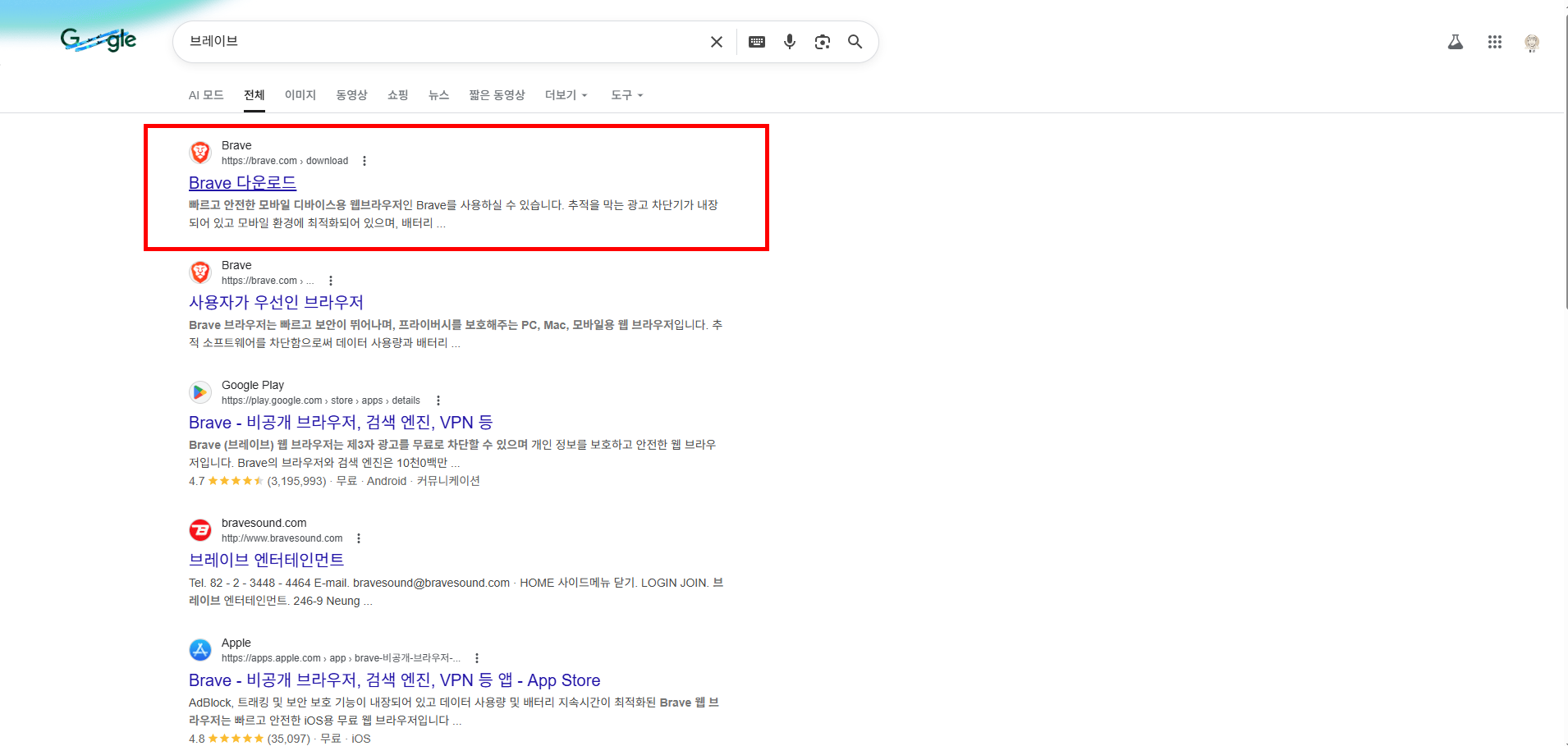 ① 플레이스토어/앱스토어에서 Brave 브라우저 설치