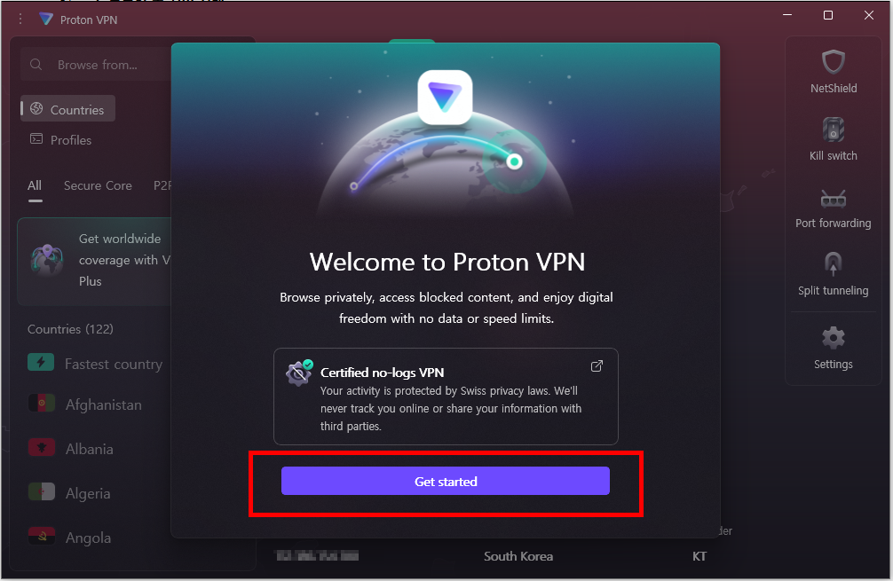 - 상단 메뉴에서 “Get Proton VPN” 클릭