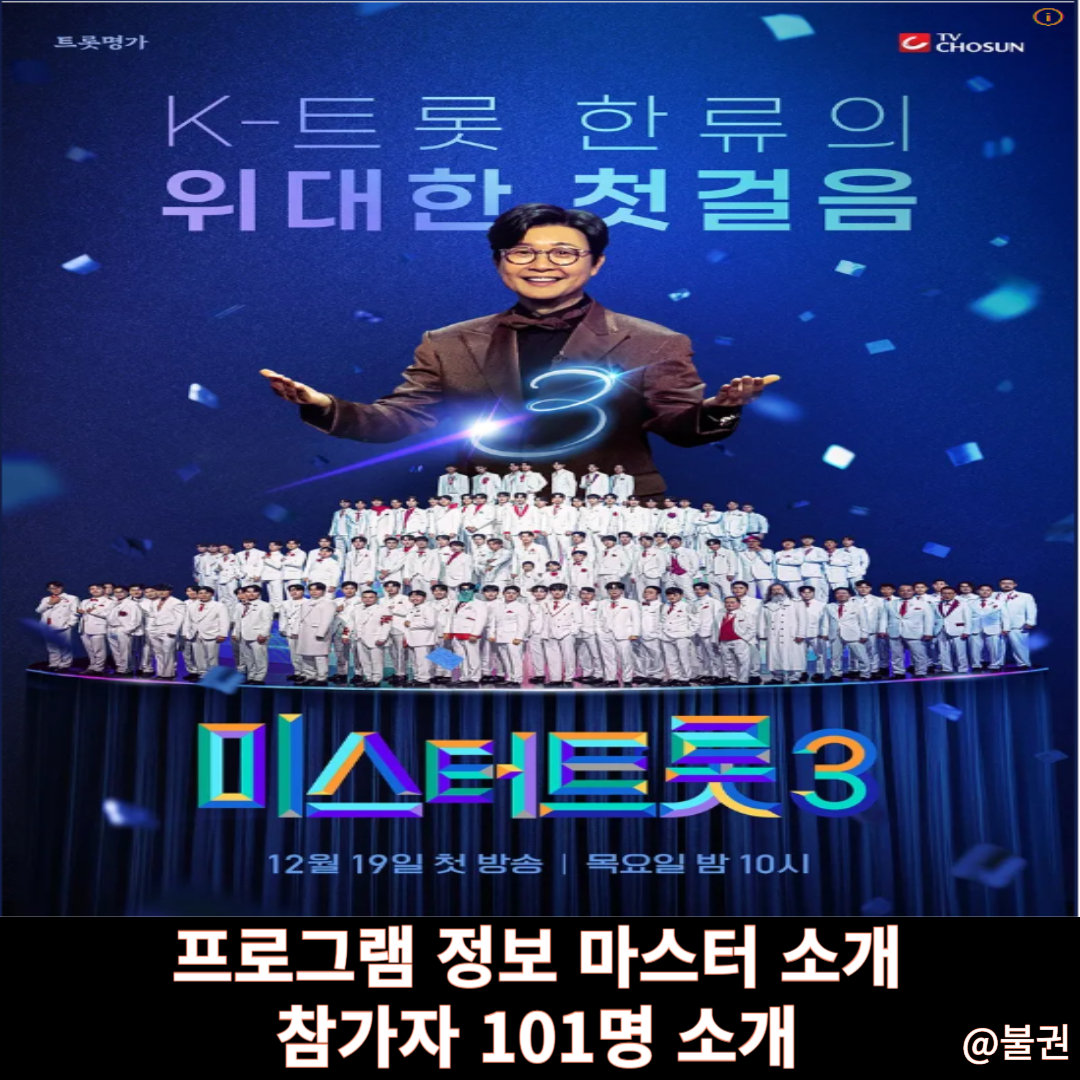 미스터 트롯3 "제 2의 임영웅" 참가자 101명 소개 및 마스터 장민호,영탁,이찬원,정동원,김희재 등