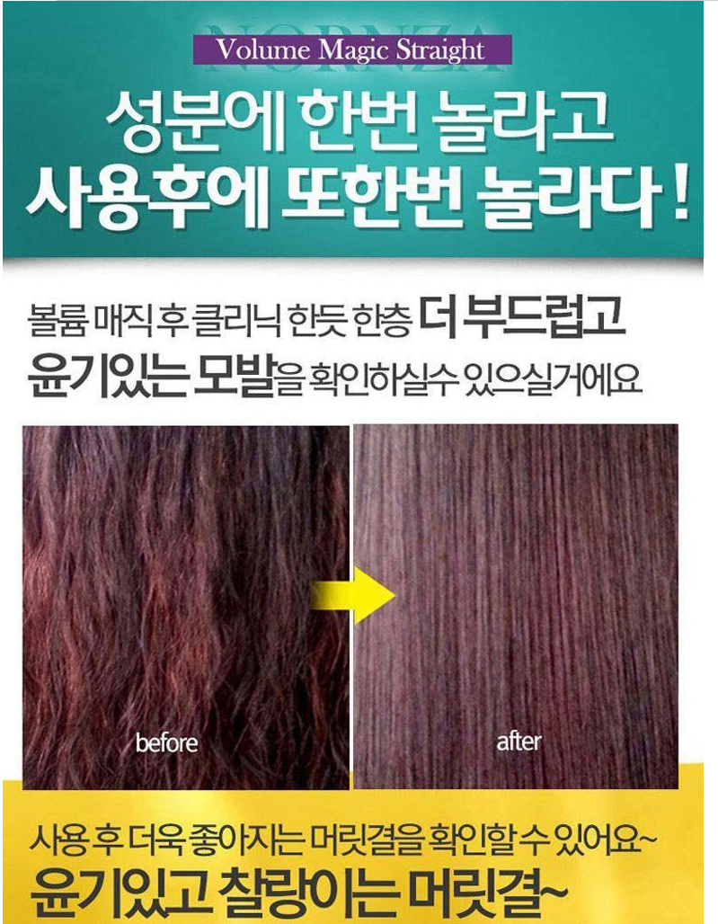 | 효과 | 찰랑이고 윤기있는 스트레이트 | 차분한 볼륨매직, C컬 가능 |