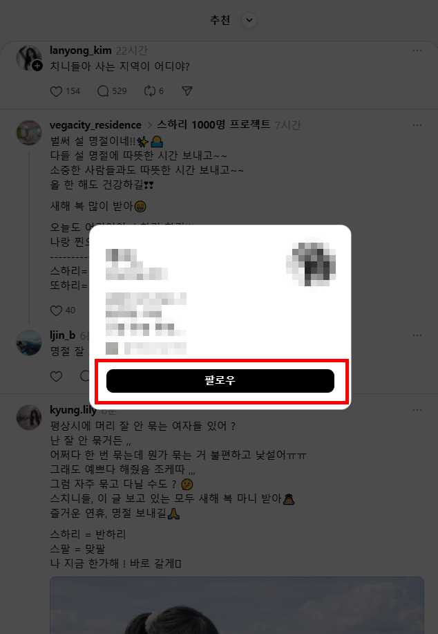 즉, 스레드에서 친해지고 싶거나