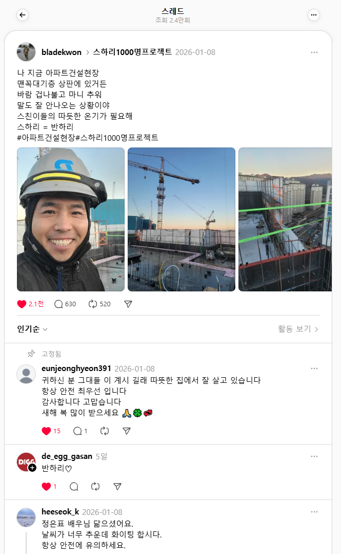 스레드에서는 이런 반응이