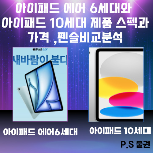 아이패드 에어 6세대와 아이패드 10세대 제품 스펙과 가격 ,펜슬성능분석