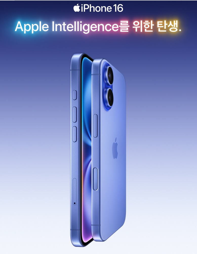 아이폰 16은 최신 A18 칩셋, 다이나믹 아일랜드, 애플 인텔리전스(AI) 기능, 48MP 카메라,
