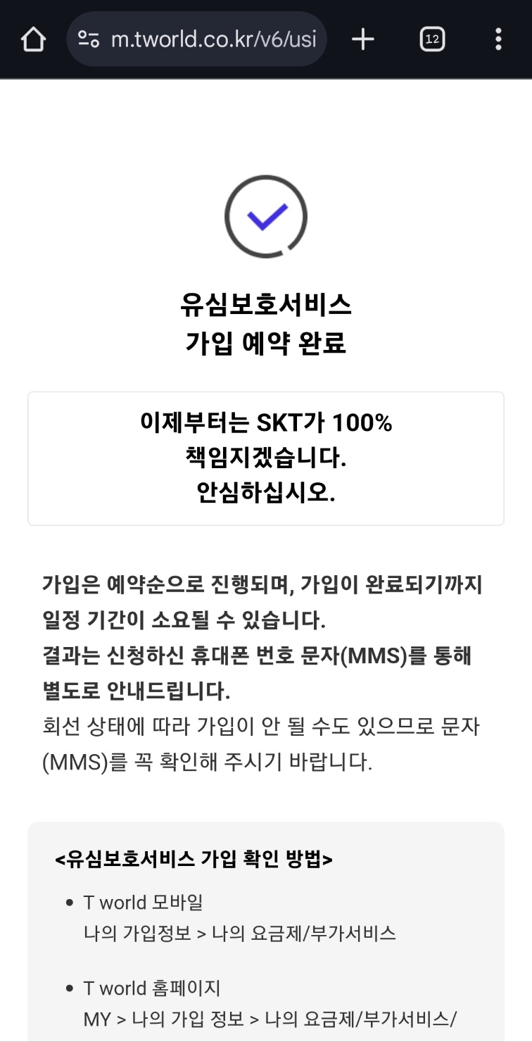 5.고생하셨습니다. 이로서 유심보호서비스 가입예약완료