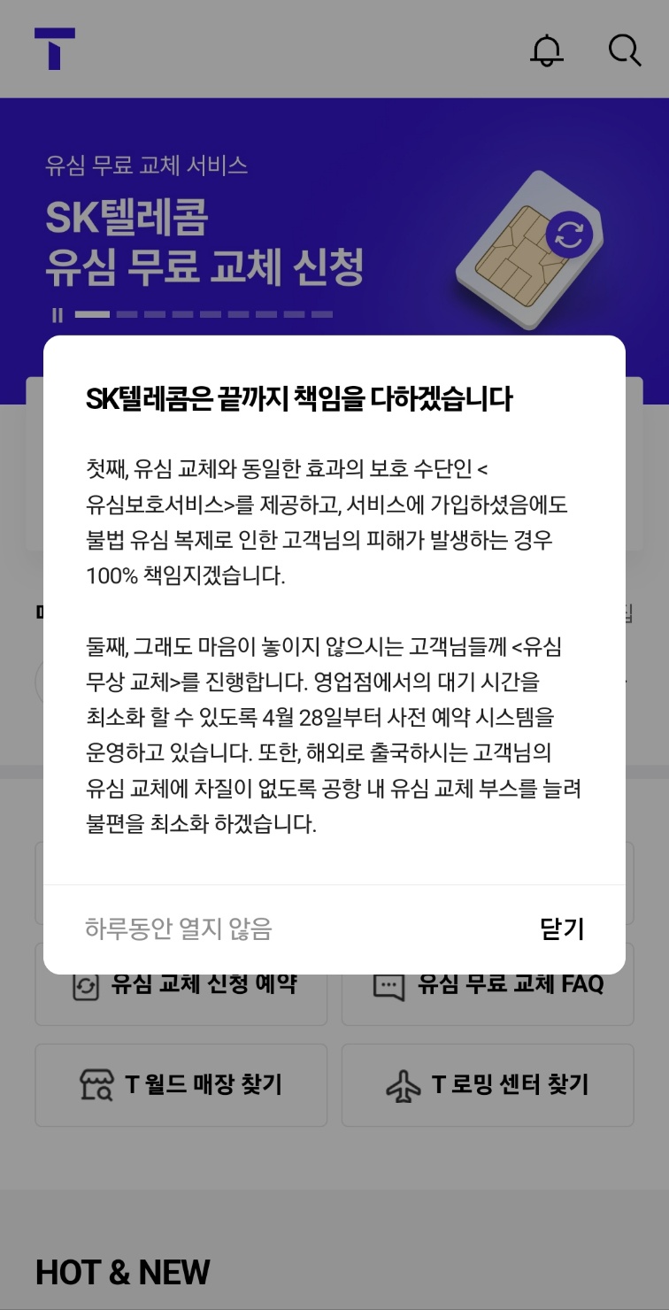 특히 SK텔레콤 이용자라면 무료로 제공되는 유심보호서비스를 꼭 신청해야 합니다.