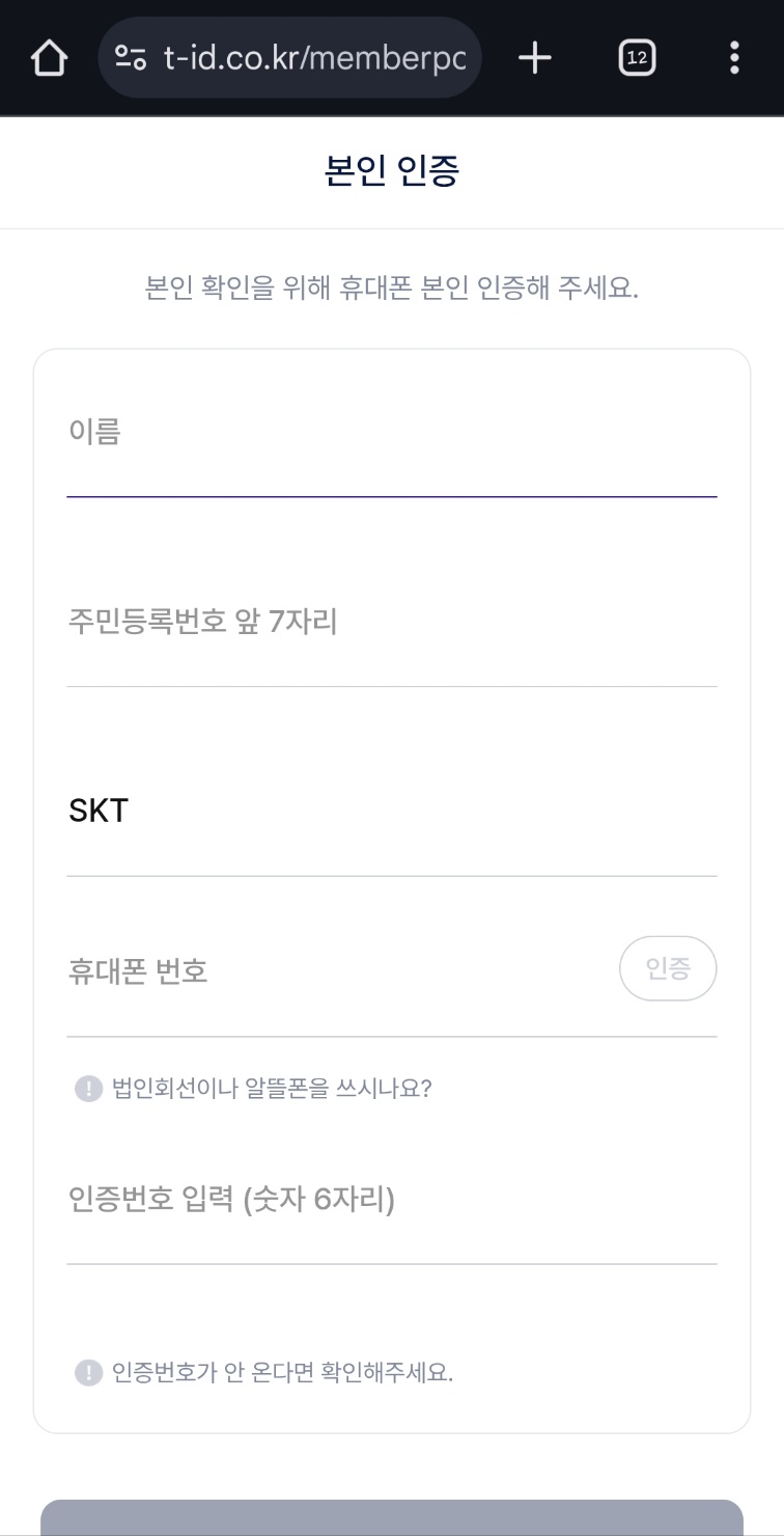 - 본인 인증 진행