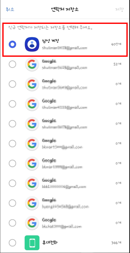 - 연락처 저장 위치 확인 및 백업