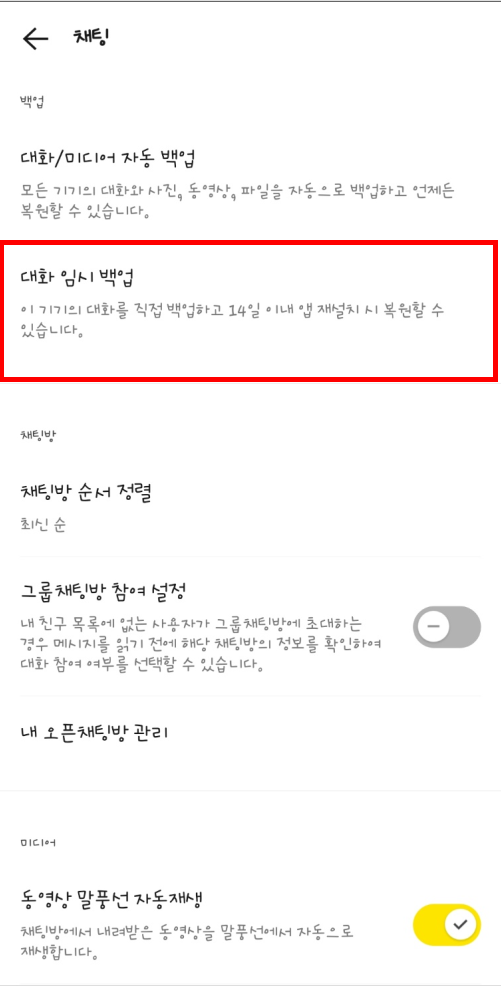 따라서 반드시 유심 교체 전에 카카오톡 대화 백업을 먼저 진행하세요.