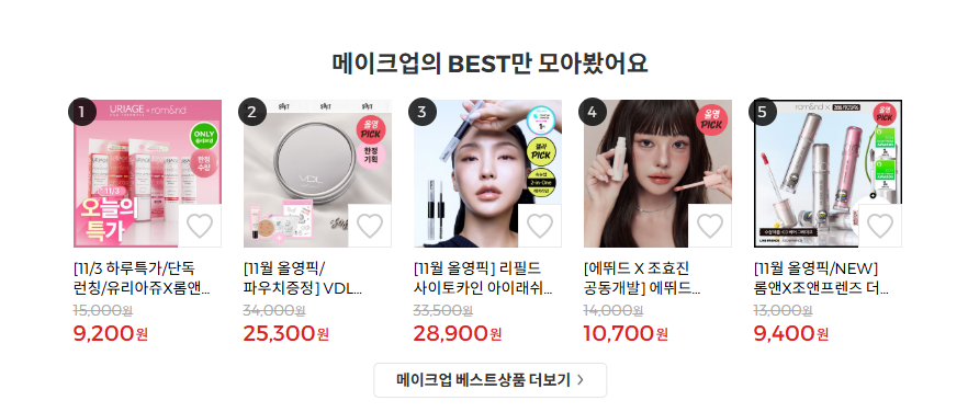 인기템: 클리오·롬앤·라카·입큰·라운드랩·토리든·라보타치