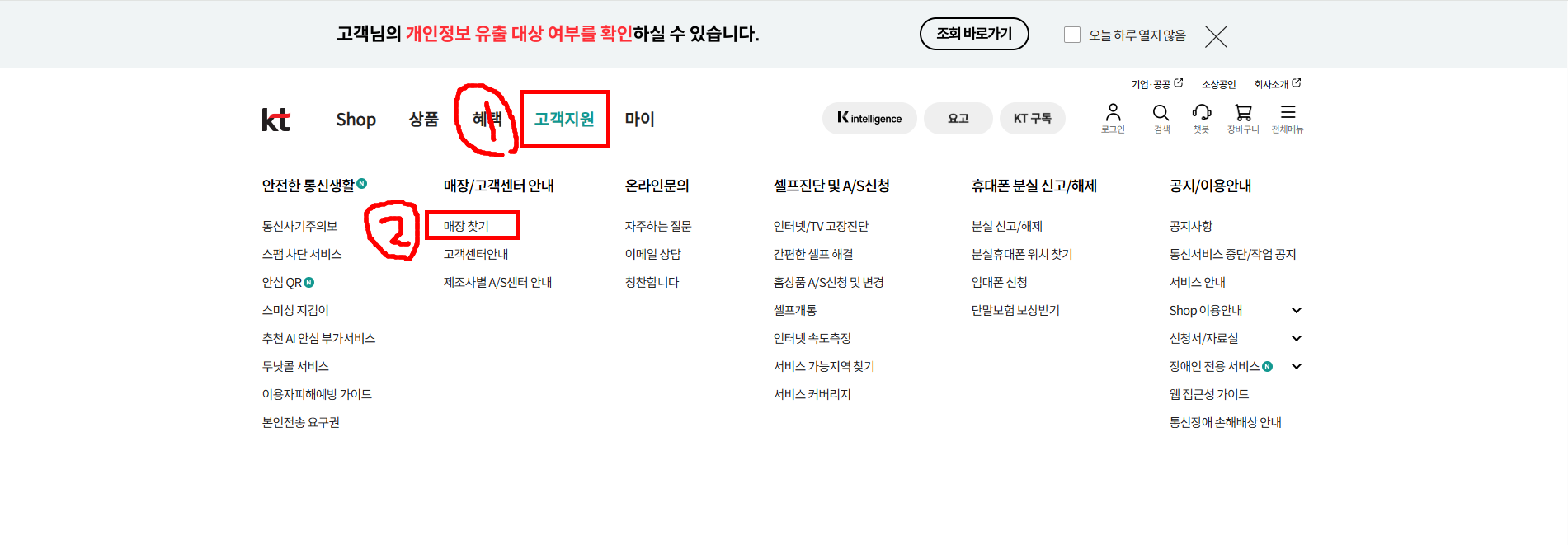 1️⃣ KT 매장찾기 페이지 접속 https://www.kt.com/
