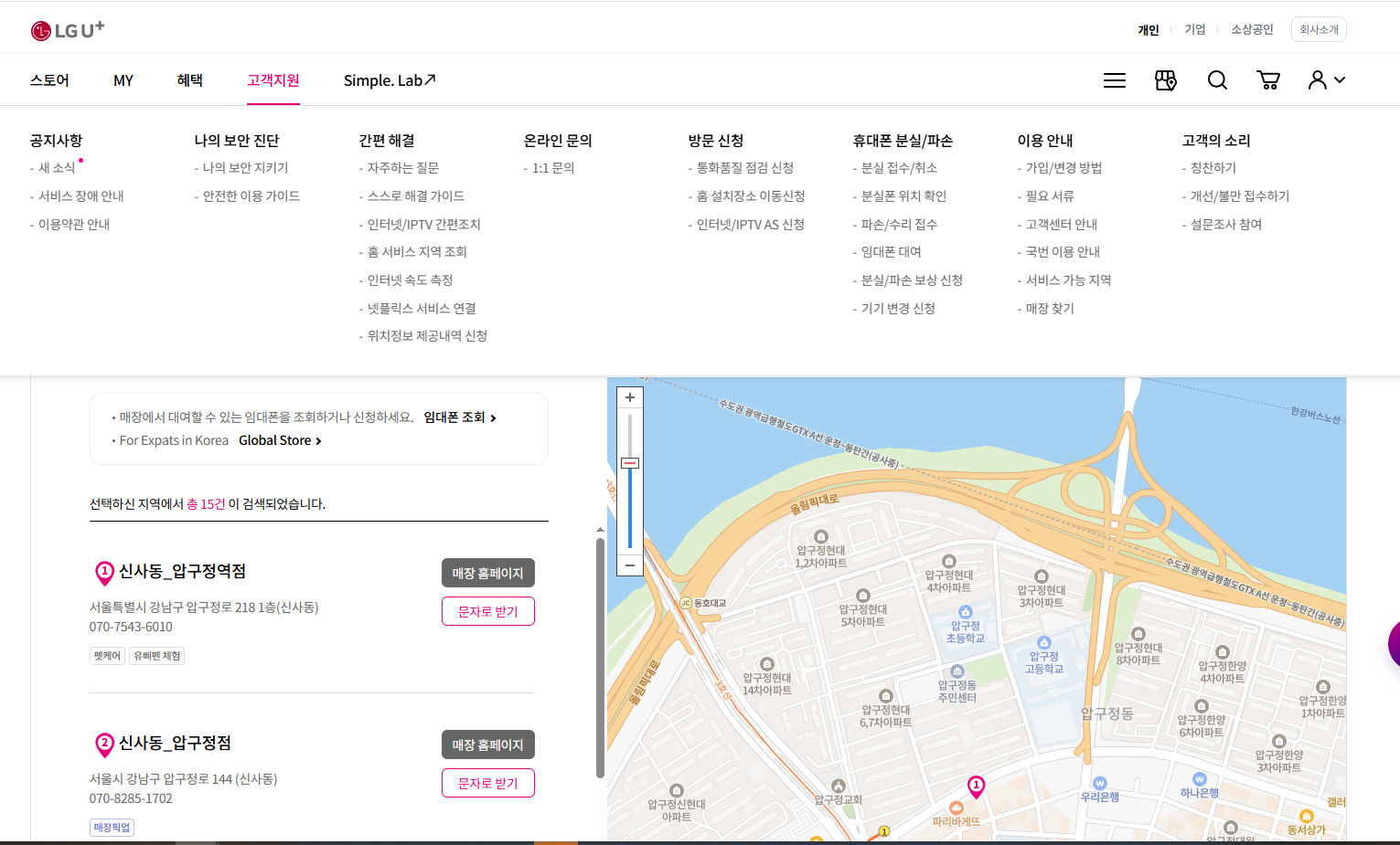 매장 찾기 < 고객지원 | LG U+