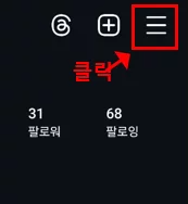 - 인스타그램 앱에서 내 프로필로 이동합니다.