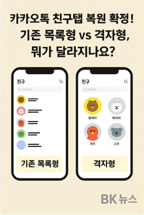 카카오톡 친구탭 복원 확정! 기존 목록형 vs 격자형, 뭐가 달라지나요?