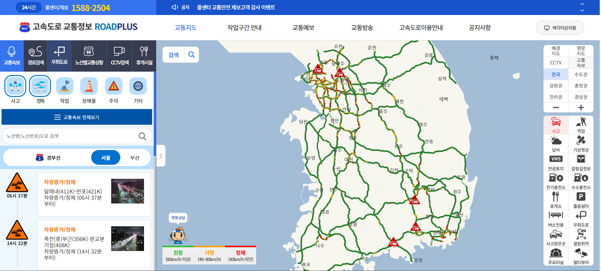 한국도로공사 공식 교통정보 포털인 ROADPLUS
