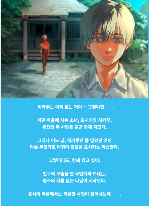 단연코 《히카루가 죽은 여름》입니다. 이 작품은 겉보기엔 한적한 시골 마을에서 벌어지는