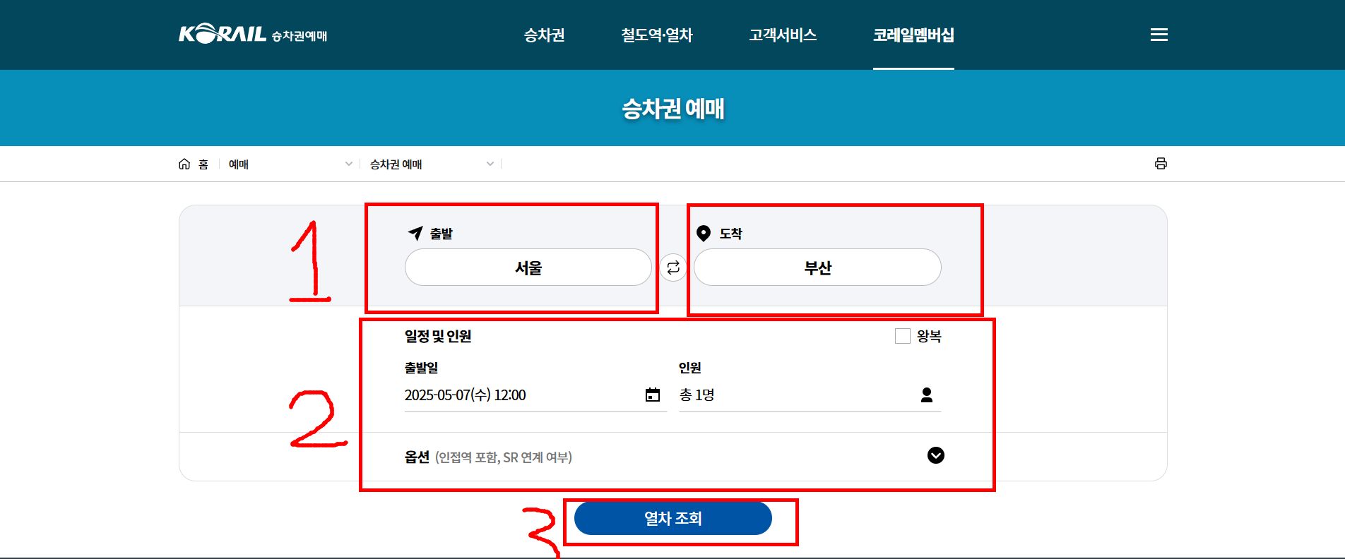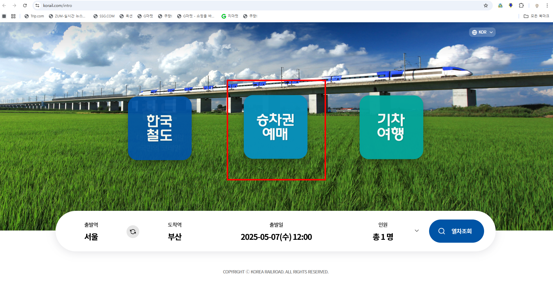 3. ‘승차권 예매’ 클릭
