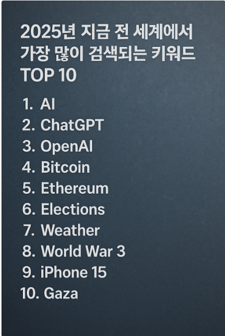 2025년 지금 전 세계에서 가장 많이 검색되는 키워드 TOP 10
