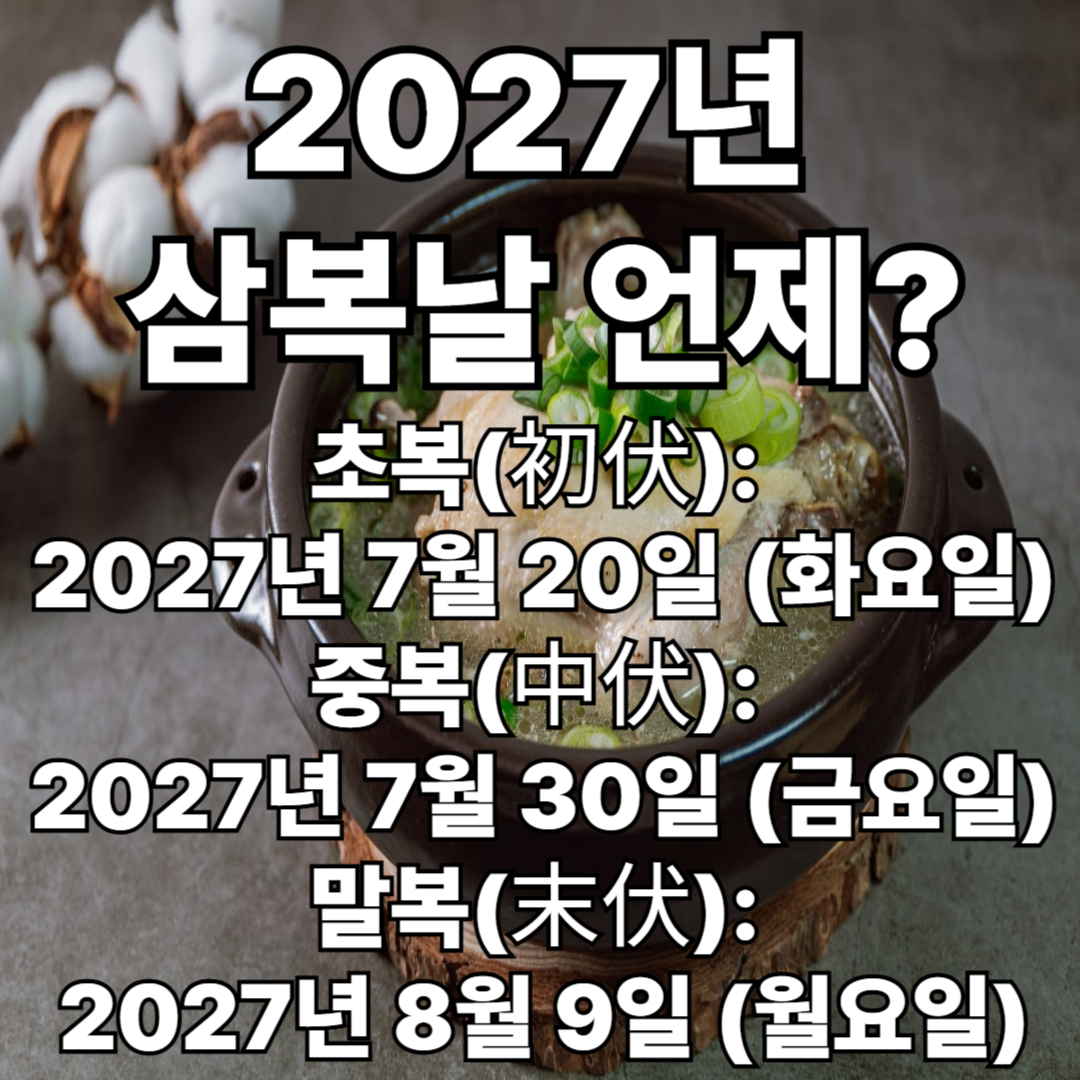 - 초복(初伏): 2027년 7월 20일 (화요일)
