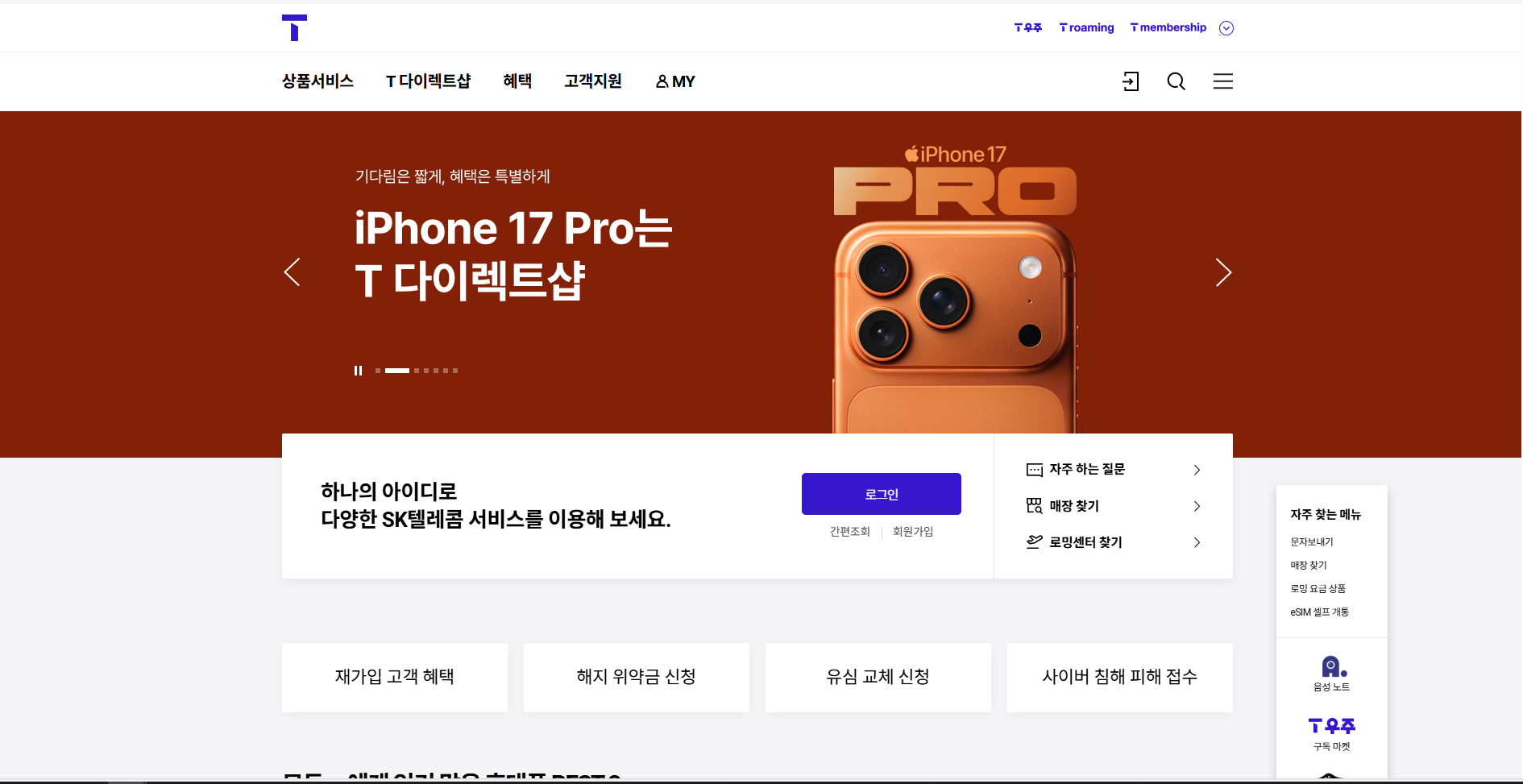 1. T월드 앱 또는 SKT 홈페이지 접속