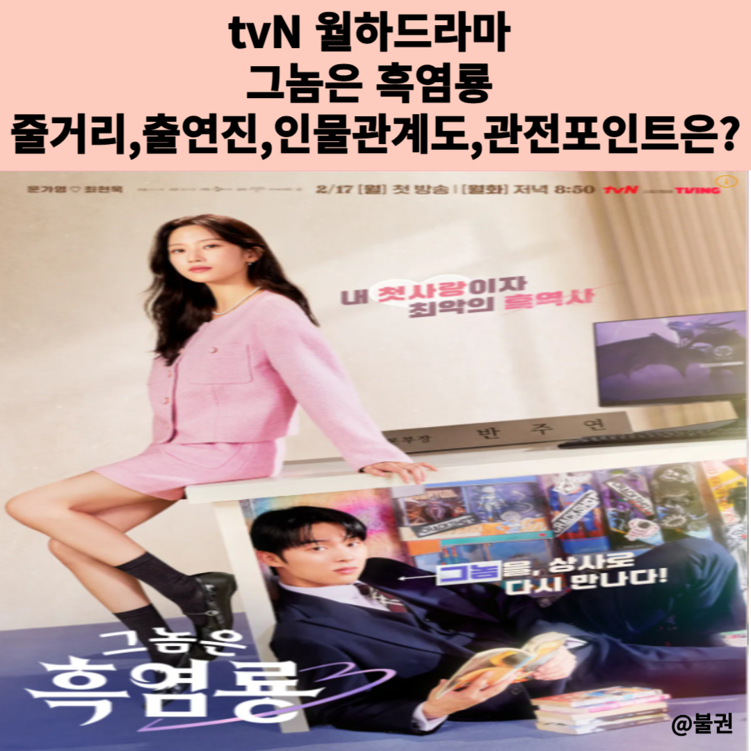 2025년 2월 17일부터 tvN에서 방영 예정인 월화 드라마 그놈은 흑염룡이 시청자들을 찾아옵니다.이 작품은 혜진양 작가의 인기 네이버 웹툰을 원작으로 하며,과거 온라인 게임에서 만난 두 주인공